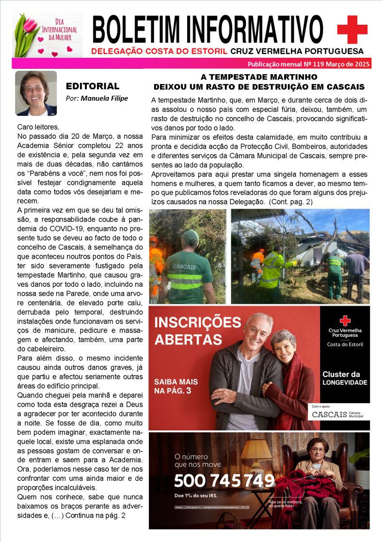 Capa - Editorial; A tempestade Martinho deixou um rasto de destruição em Cascais; Inscrições abertas do Cluster da Longevidade; Campanha de Consignação do IRS